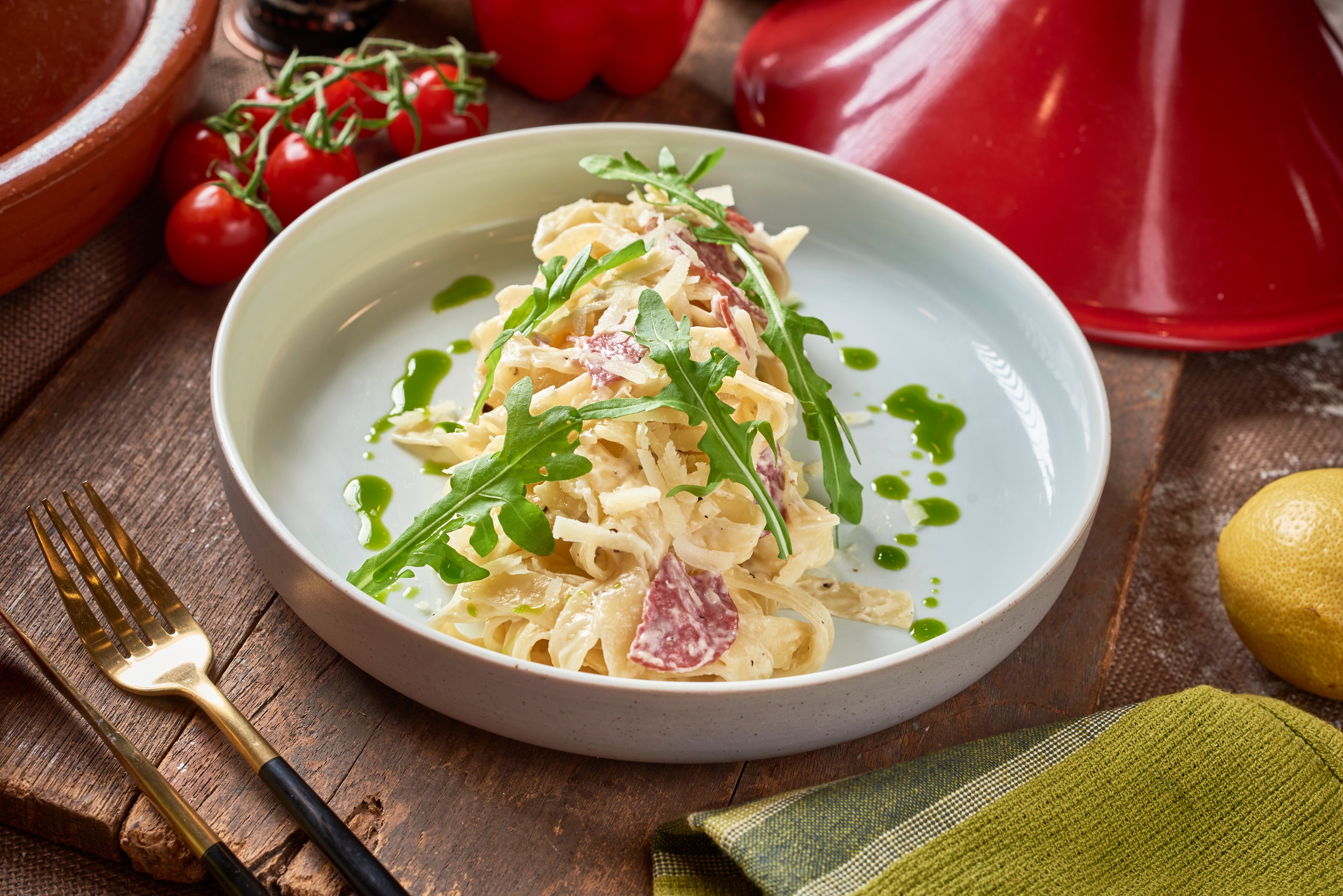 A simple but classic, Sliced garlic sauteed in olive oil until golden brown, fresh prawns and a dash of chili flakes to give an extra kick. Garnished with fresh parsley.